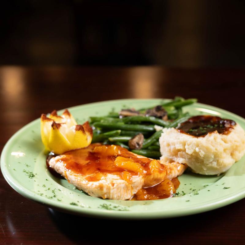 Served with your choice of two sides and freshly baked bread. Sides: Side Salad | Caesar Salad | Wild Rice | Mashed Potatoes | Baked Potato Casserole | Brew City Fries Brew City Onion Rings | Vegetable of the Day | Peas & Carrots Baked Beans | Fresh Fruit | Homemade Coleslaw • Signature Steak Toppings: Garlic-Herb Butter | Brandy Peppercorn | Mushroom Bordelaise • Add to any entree: Shrimp (4) +$7.99 | Scallops (4) +$8.99